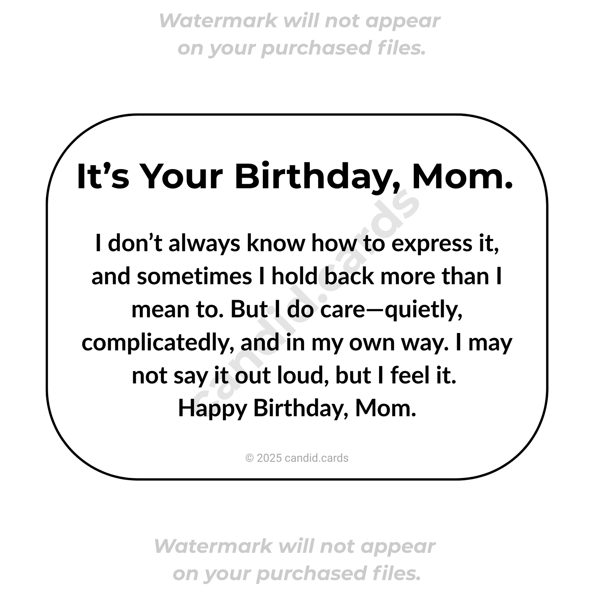 Honest Birthday Card for Mom – I Care, Even If I Can’t Say It